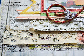 Мне хотелось сделать очень нежную, теплую открытку. Как нельзя кстати оказалась бумага от My mind's eye коллекции Lush. ( Которая кстати, досталась мне как конфетка от Лилит). Так же я использовала бумагу от Graphic 45 Secret Garden, марля, кружево, брадс.